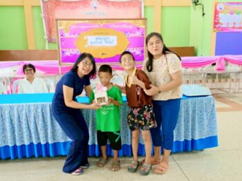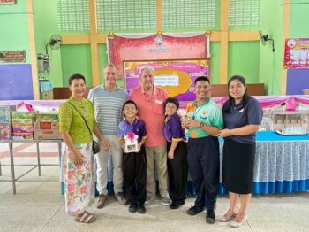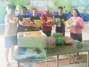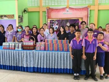 คณะคุณอริสา บัวมี ที่นำอาหาร และขนมมาเลี้ยงนักเรียนในมื่อกลางวัน พร้อมบริจาคเงินอีกจำนวนหนึ่งให้กับทางโรงเรียนเนื่องในโอกาสวันคล้ายวันเกิด